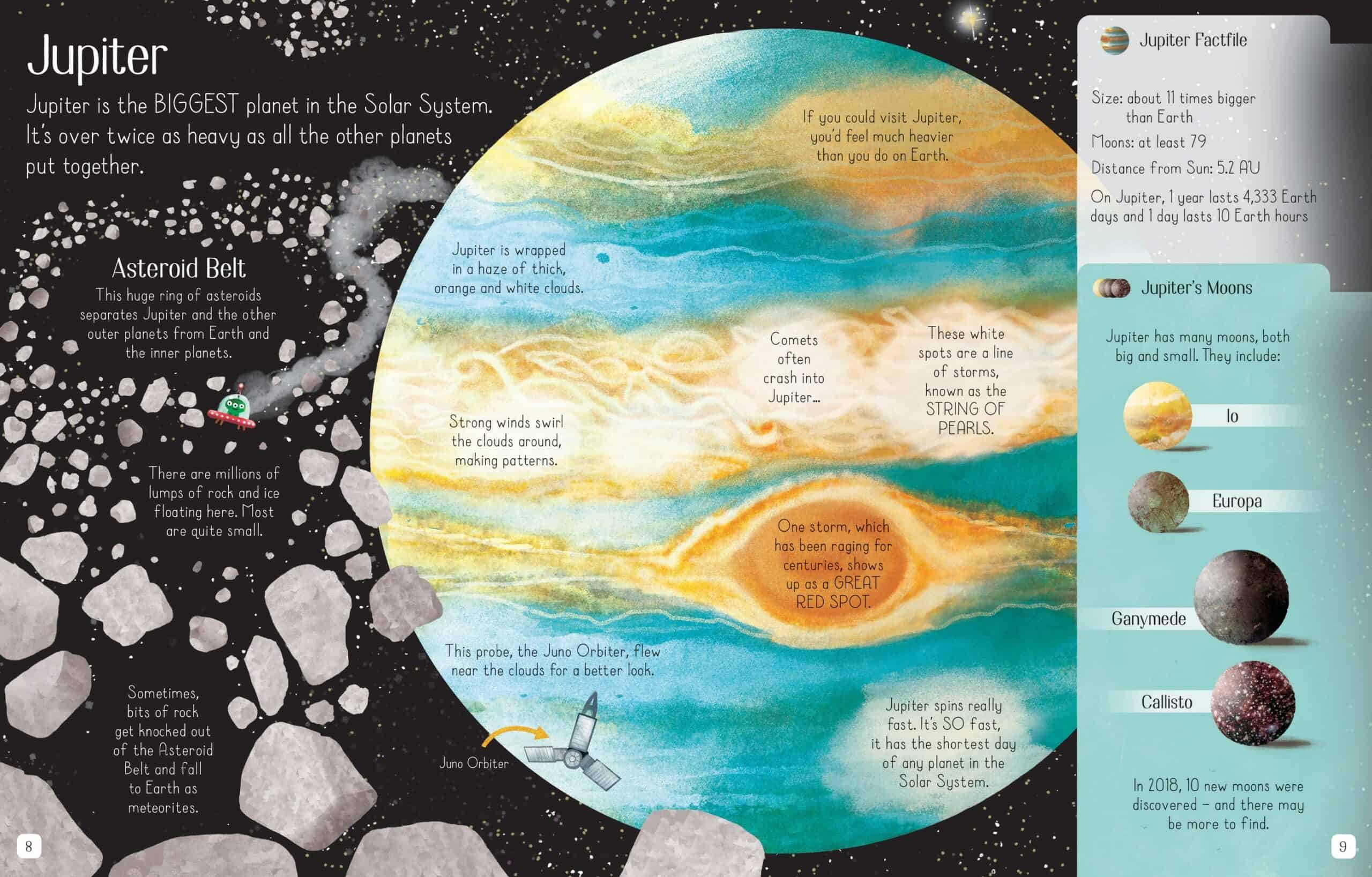Această carte interactivă pentru copii oferă un viitor în calatorie prin sistemul solar, explorând soarele, planetele și alte aspecte ale universului nostru. Utilizând file ingenioase care se deschid pentru a dezvălui informatii fascinante despre minunile spatiului, această carte este o excelentă opțiune pentru tinerii astronomi sau oricine este curios despre spațiu. Conform contextului furnizat, aceasta carte are 16 de pagini și este destinată copiilor cu varsta de 6 ani și mai mari.